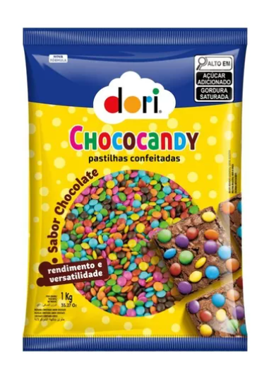 PASTILHAS CONFEITADAS SABOR CHOCOLATE COLORIDAS E AROMATIZADAS ARTIFICIALMENTE.