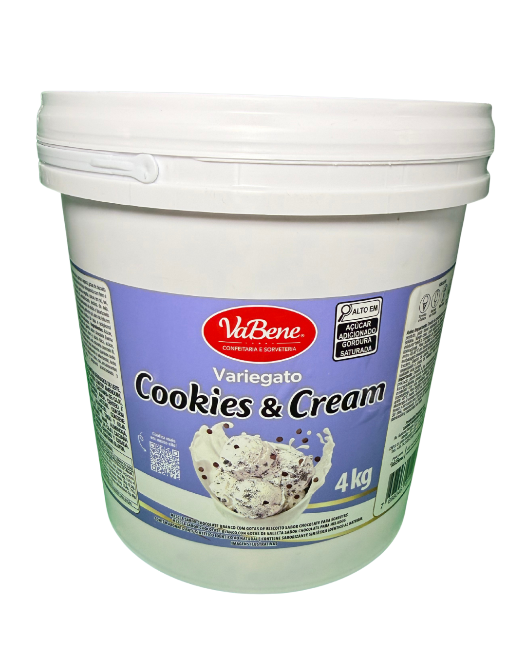 O Variegato Cookies Vabene 4kg é ideal para quem deseja agregar sabor e textura diferenciada às produções. Com pedaços crocantes de cookies, é perfeito para mesclar em sorvetes, rechear bolos ou finalizar sobremesas.